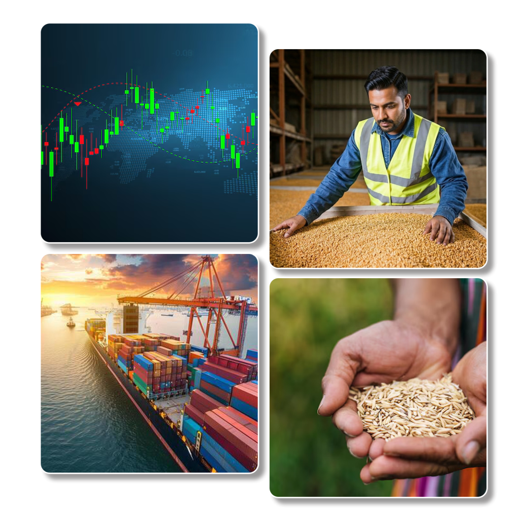 We provide end-to-end B2B services for the global rice industry, ensuring quality, efficiency, and reliability from paddy to plate.